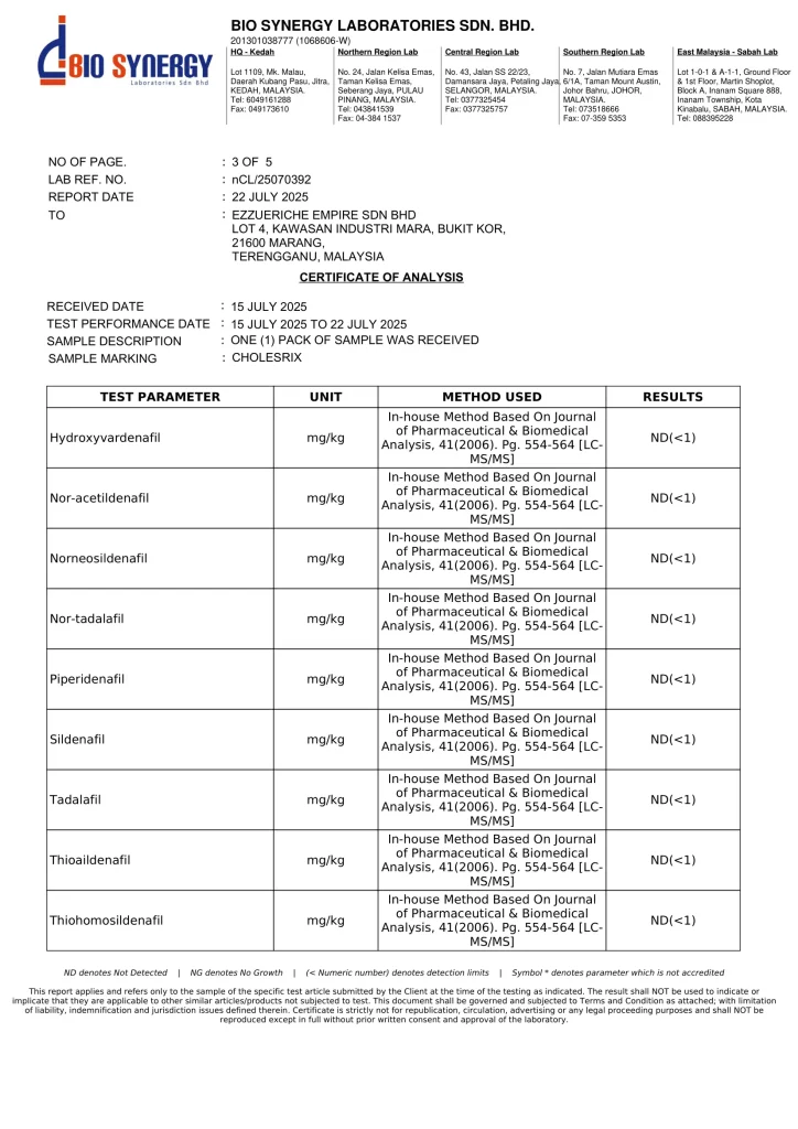 Kesemua Bukti Tanda Jus CHOLESRIX 100% Selamat Di Gunakan